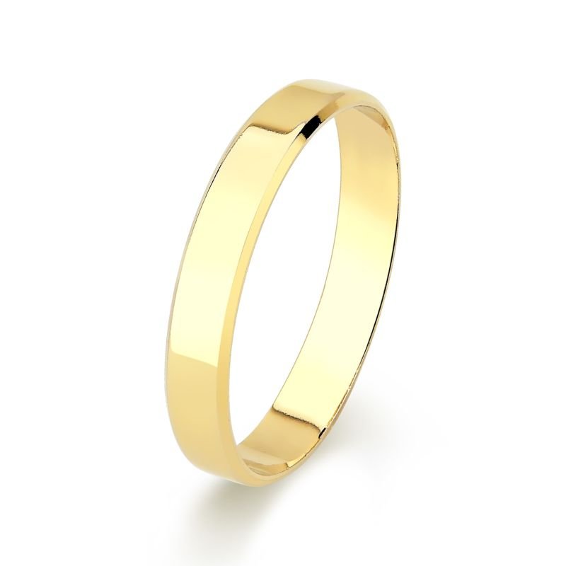 Aliança confeccionada em ouro 10k, com formato interno reto e externo reto.