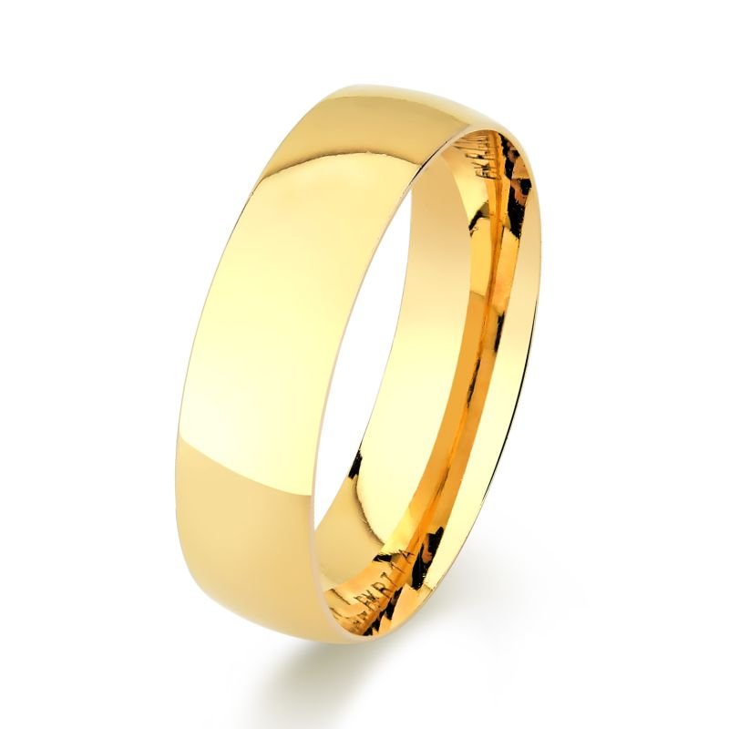 Aliança confeccionada em ouro 10k, com formato interno anatômico, para um maior conforto no uso, e externo abaulado.