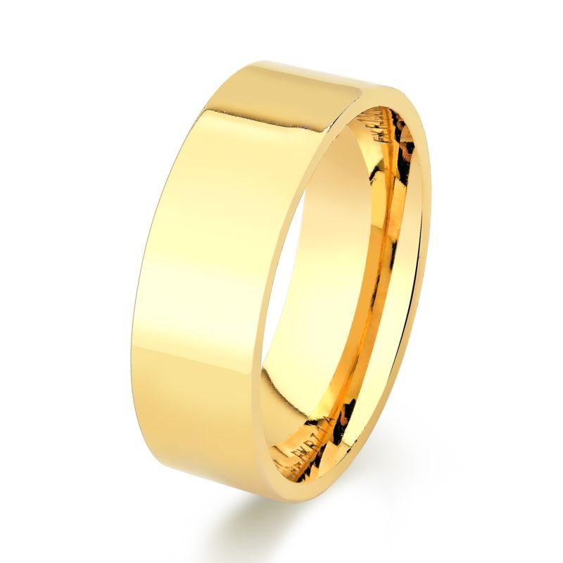 Aliança confeccionada em ouro 18k, com formato interno anatômico, para um maior conforto no uso, e externo reto.