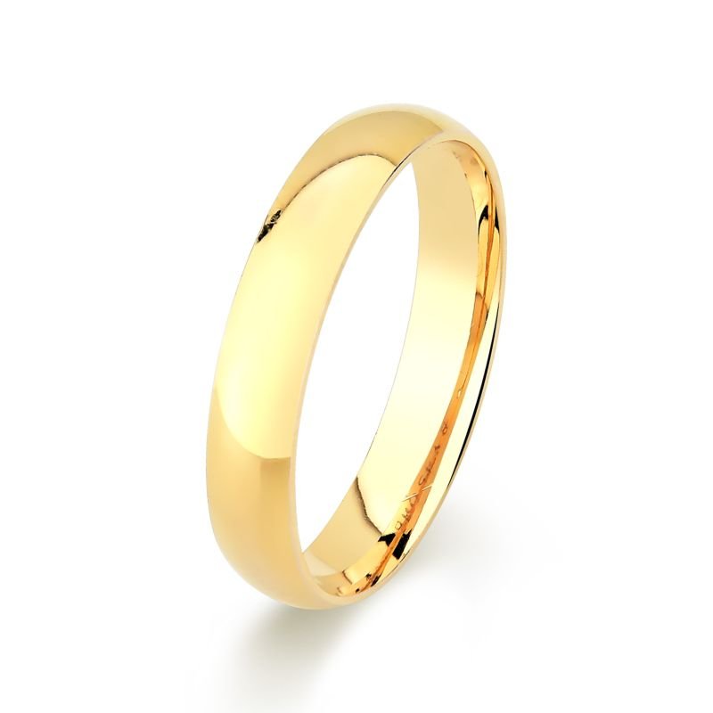 Aliança confeccionadas em ouro 18k, com formato interno anatômico, para um maior conforto no uso, e externo abaulado.