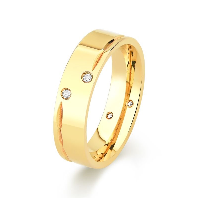 Aliança confeccionada em ouro 18k, com formato interno anatômico, para um maior conforto no uso, e externo reto.