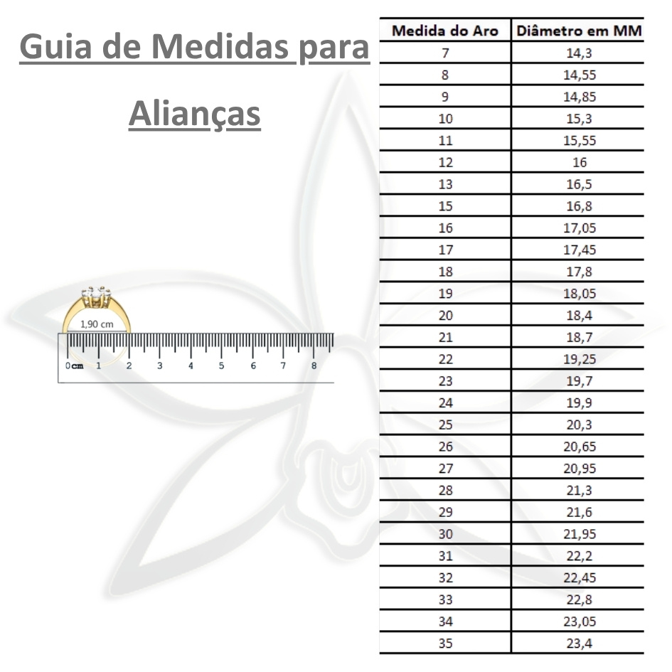 - O peso e as dimensões das alianças podem variar conforme os tamanhos escolhidos.