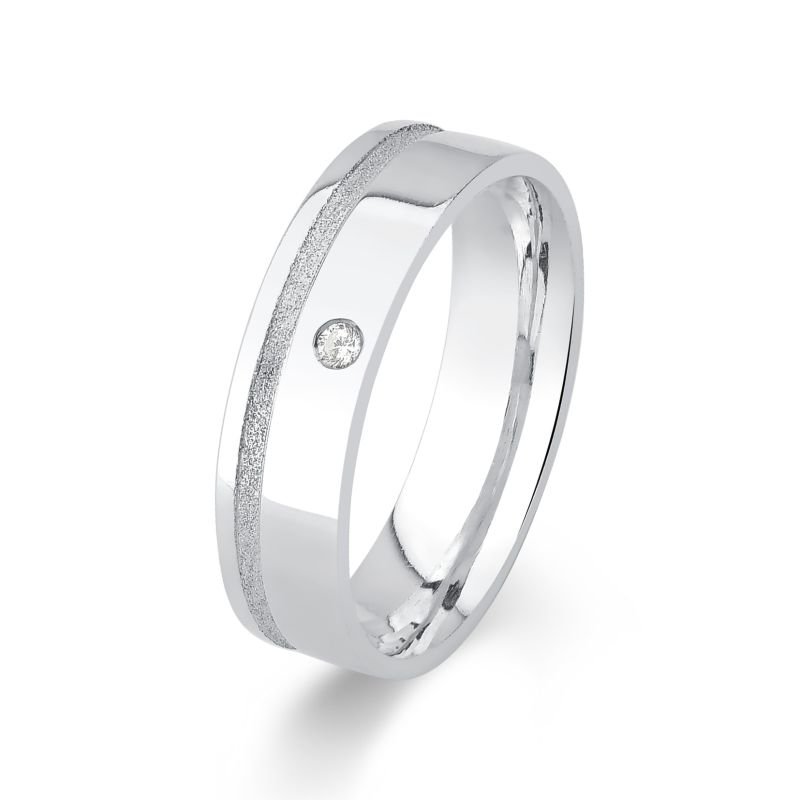 Aliança confeccionada em prata 925 com interno semi-anatômico para um maior conforto no uso e externo reto com acabamento diamantado no friso.
