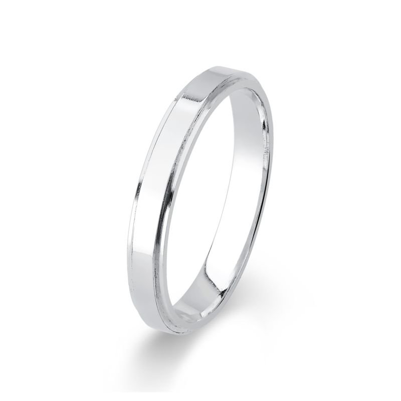 Aliança confeccionada em prata 925 com interno semi-anatômico para um maior conforto no uso e externo reta com rebaixo lateral.