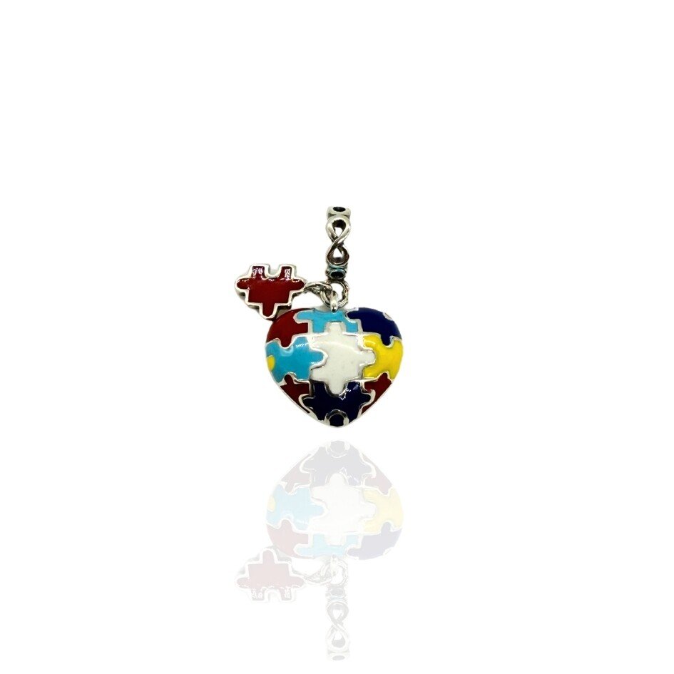 Berloque em formato de coração, símbolo do autismo.