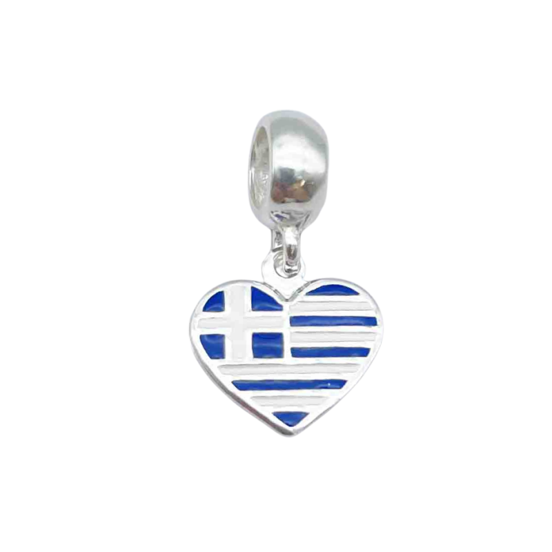 Berloque em formato de coração da bandeira da Grécia.