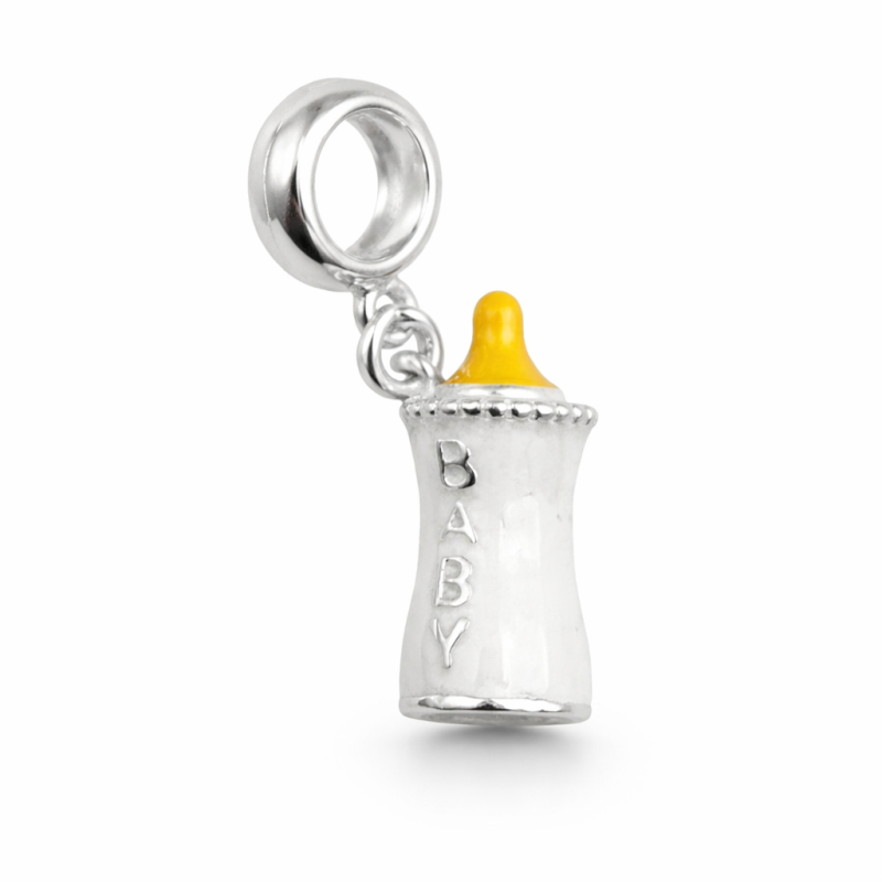 Berloque em forma de mamadeira.