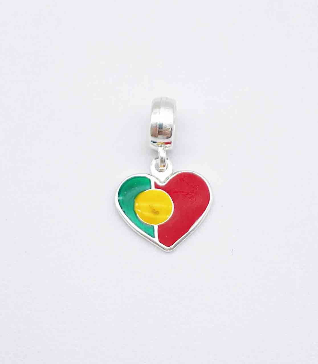 Berloque em formato de coração da bandeira de Portugal.