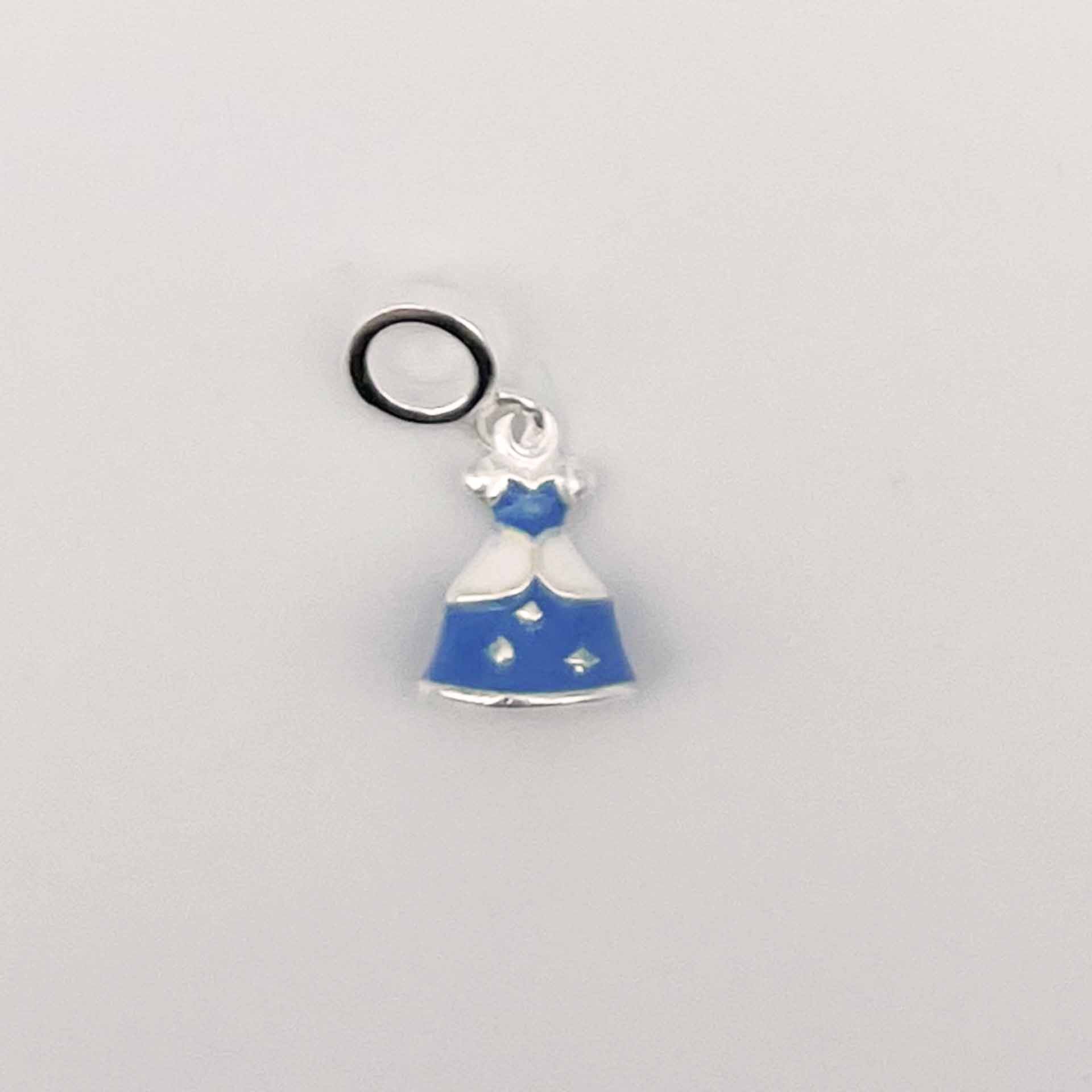 Berloque em formato de vestido azul.