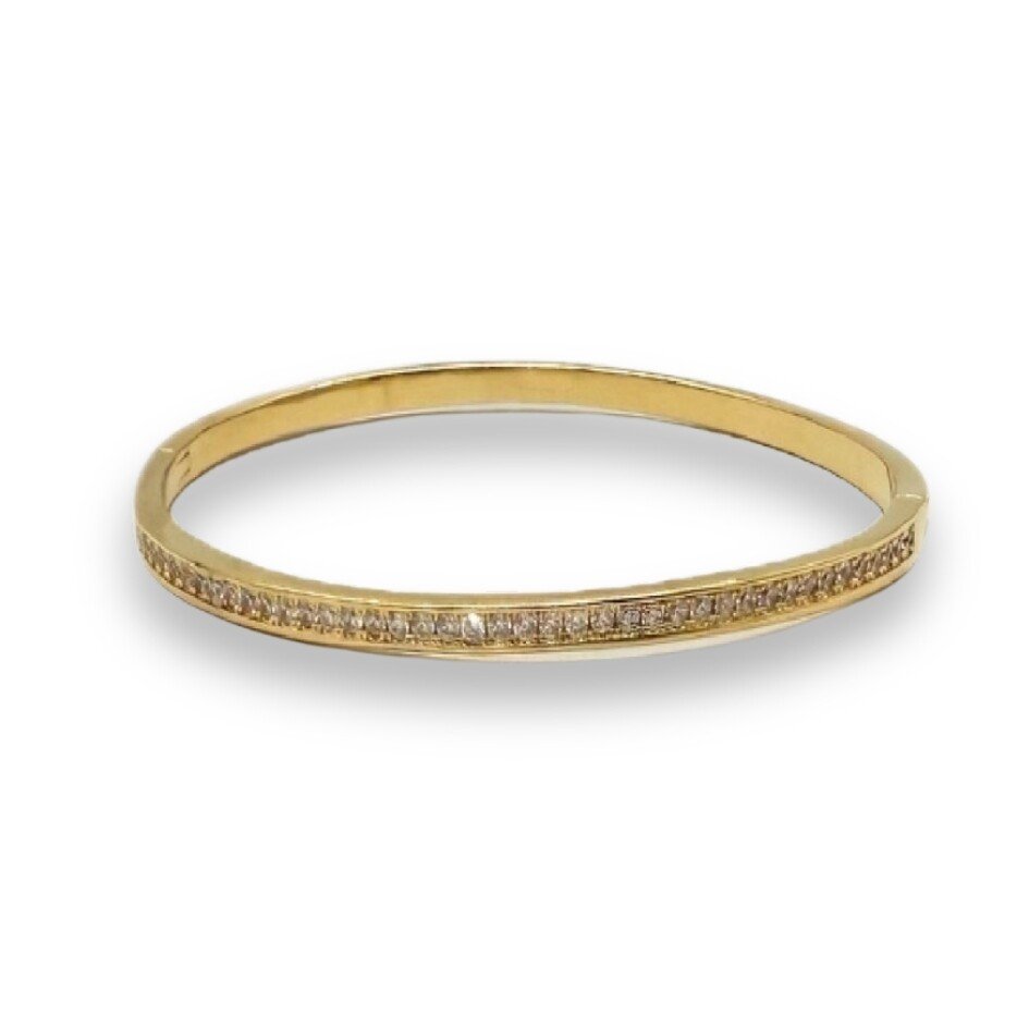 Elegante e atemporal, este bracelete banhado a ouro é realçado pelo brilho delicado das zircônias, proporcionando um toque de sofisticação ao seu visual. Ideal para compor produções clássicas ou modernas com muito charme.