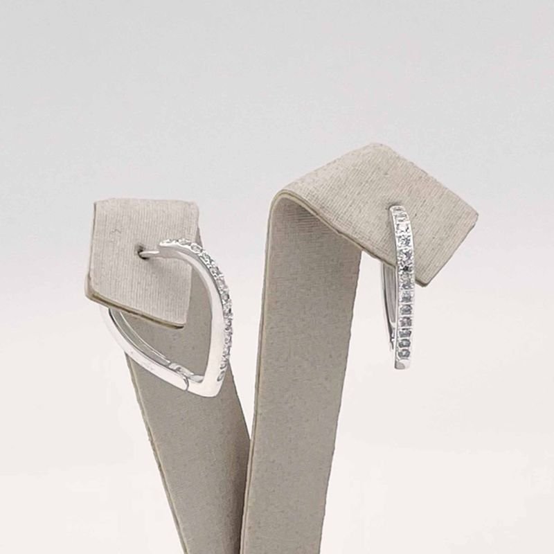 Par de brincos em prata 925. Brincos argolas em formato de coração e zircônias. Argola com fecho de click.