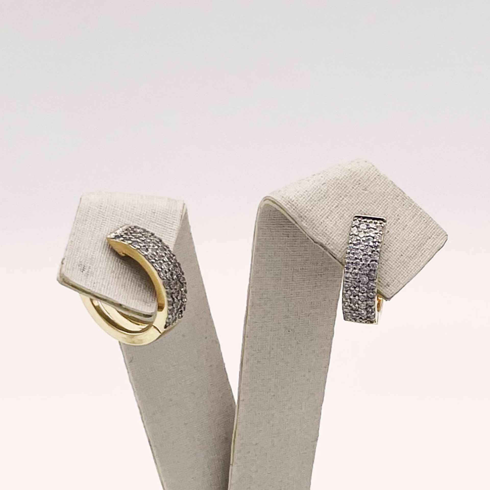 Par de brincos banhados a ouro. Brincos formato de argola com zircônias.