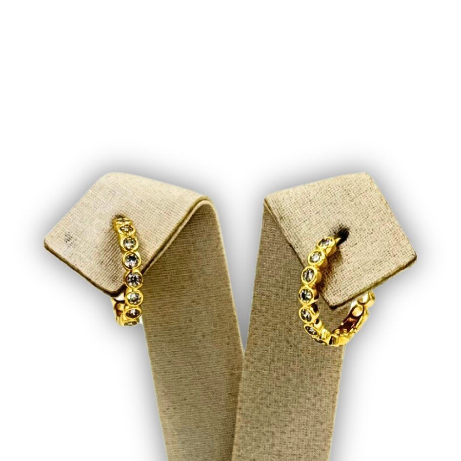 Par de brincos banhados a ouro. Brincos formato de argola com zircônias.