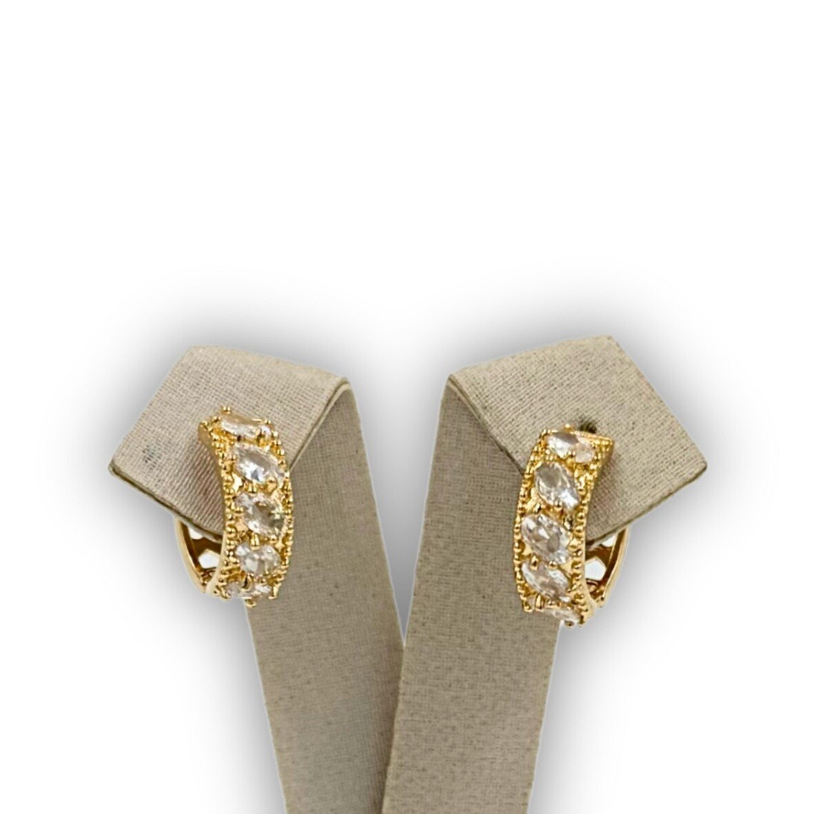 Par de brincos banhados a ouro. Brincos formato de argola com zircônias.