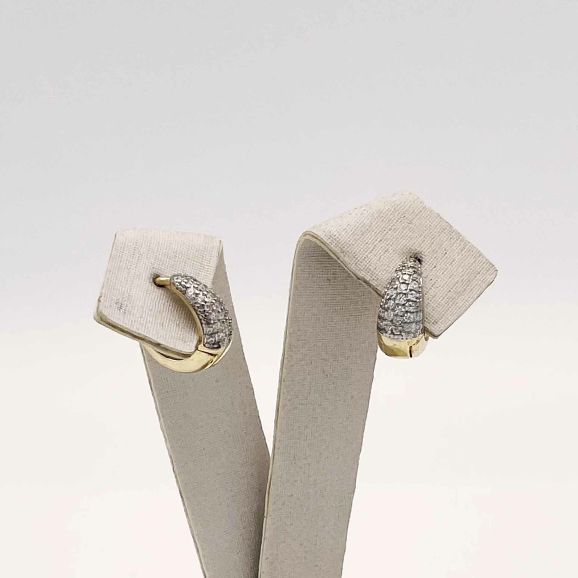 Par de brincos banhados a ouro. Brincos formato de argola com zircônias.