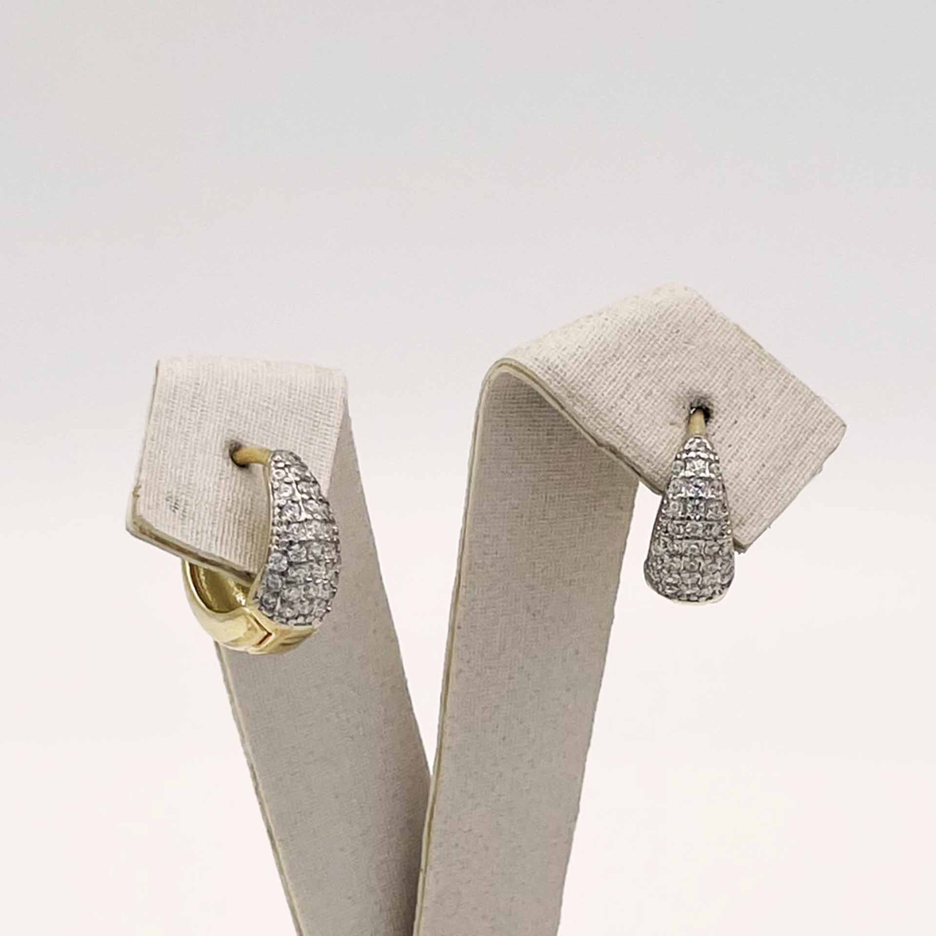 Par de brincos banhados a ouro. Brincos formato de argola com zircônias.