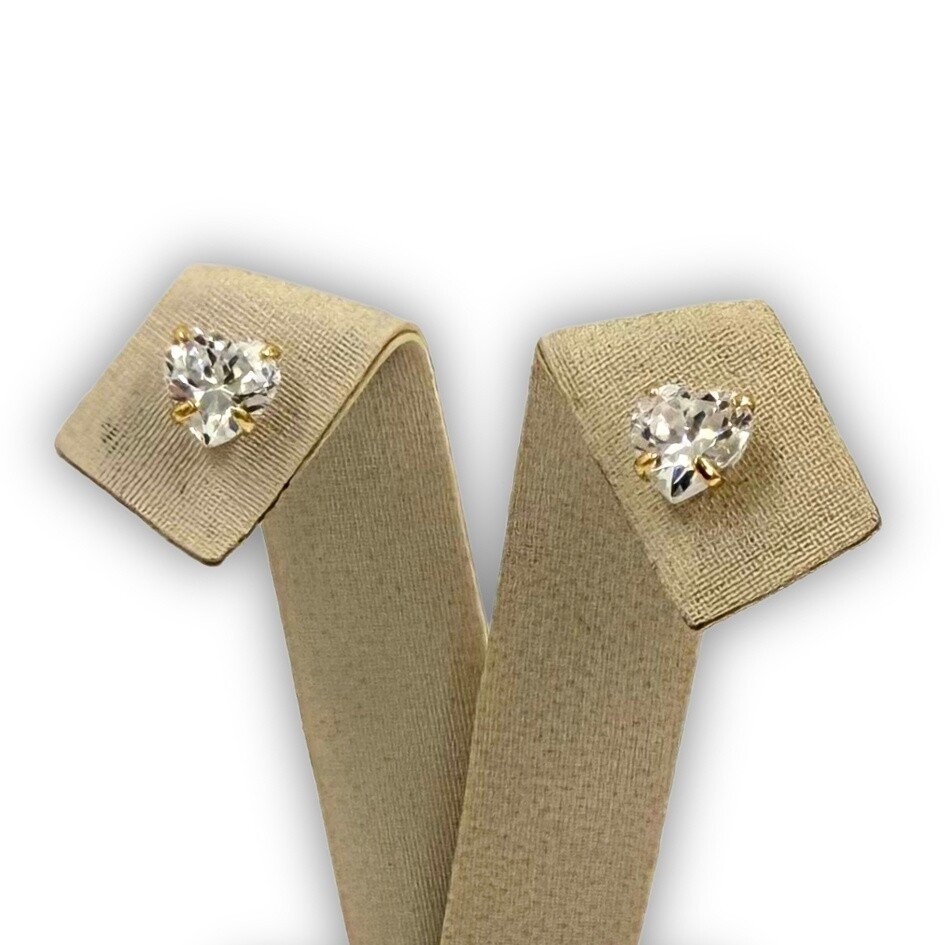 Par de brincos banhados a ouro com zircônia ponto de luz em formato de coração. Uma joia delicada e romântica, perfeita para realçar a beleza com brilho sutil e toque de amor em cada detalhe.