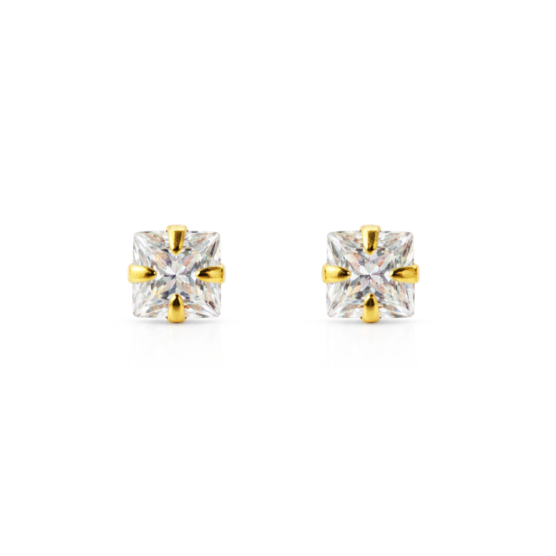 Par de brincos banhados a ouro, estilo ponto de luz com design quadrado, delicado e sofisticado. Perfeitos para o dia a dia ou ocasiões especiais, adicionam um toque de brilho elegante ao visual. Possuem fechamento com tarraxa, garantindo conforto e segurança no uso.