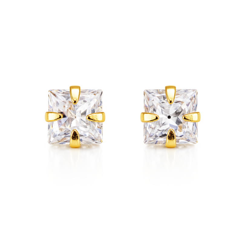 Par de brincos banhados a ouro, estilo ponto de luz com design quadrado, delicado e sofisticado. Perfeitos para o dia a dia ou ocasiões especiais, adicionam um toque de brilho elegante ao visual. Possuem fechamento com tarraxa, garantindo conforto e segurança no uso.