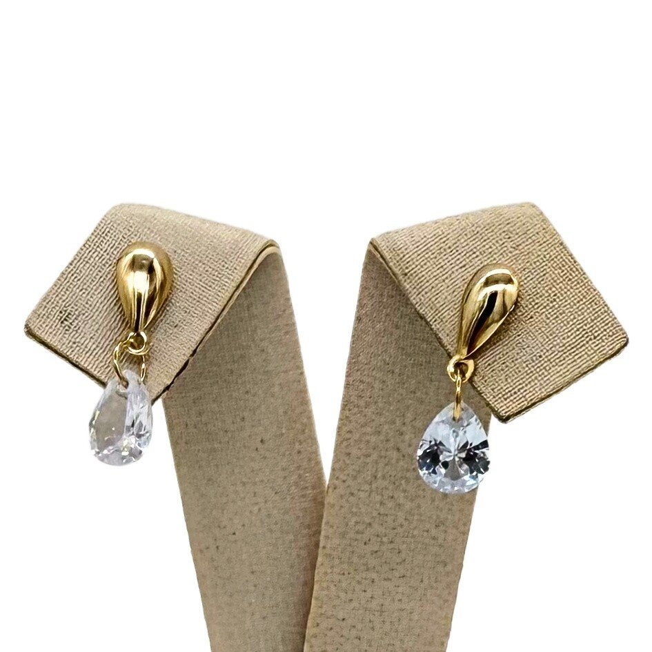 Par de brincos banhados a ouro com zircônia em formato de gota, perfeito para adicionar um toque de brilho ao seu visual.