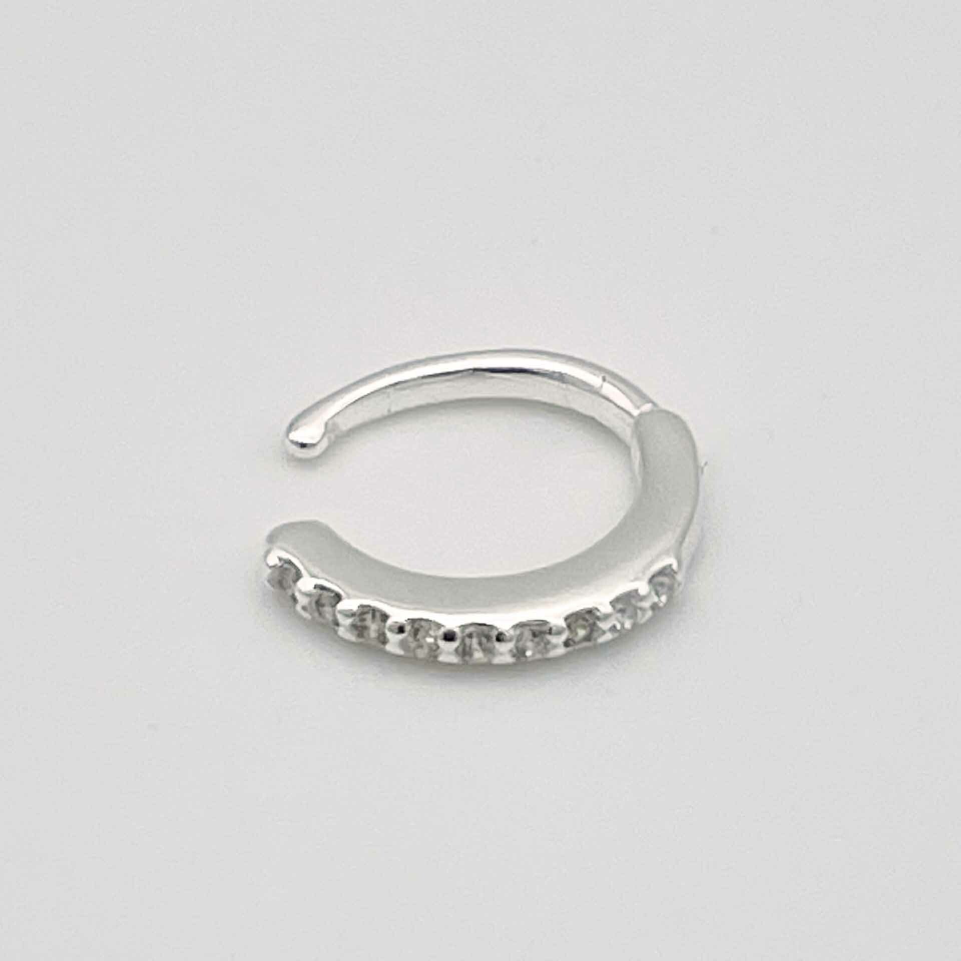 Brinco em prata 925. Brinco Fake estilo argola com zircônias.