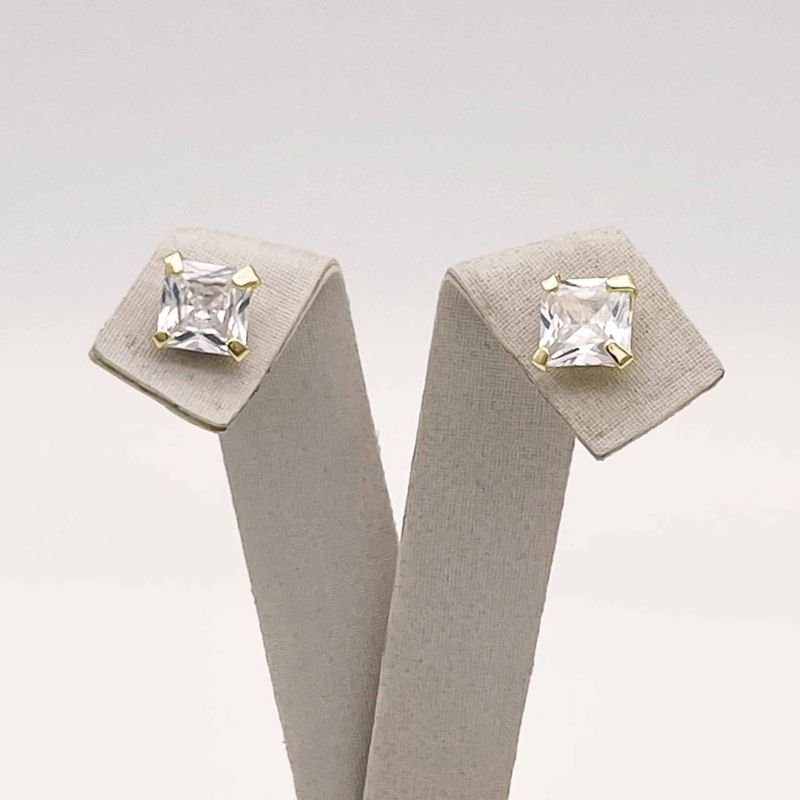 Par de brincos banhados a ouro com zircônia ponto de luz em formato quadrado. Sofisticados e minimalistas, são perfeitos para quem busca um toque de brilho com elegância discreta no dia a dia ou em ocasiões especiais.