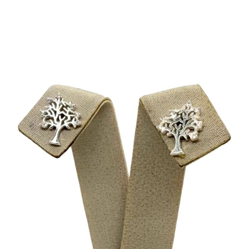Par de brincos em prata 925 representação da Árvore da Vida, adornada com microzircônias. Uma joia cheia de significado, simbolizando força, crescimento e conexão, perfeita para uso diário ou para presentear alguém especial.