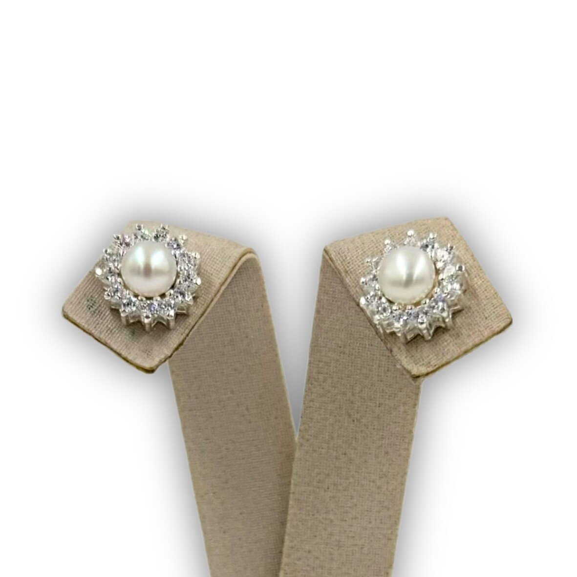 Brincos com pérola e zircônias.