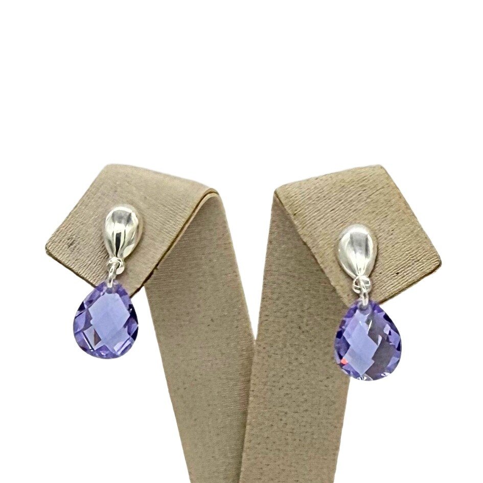 Delicados e femininos, estes brincos são confeccionados em prata 925 e apresentam cristal na cor lilás, lapidados em forma de gota. O brilho suave e o tom romântico tornam a peça perfeita para complementar looks com leveza e sofisticação.