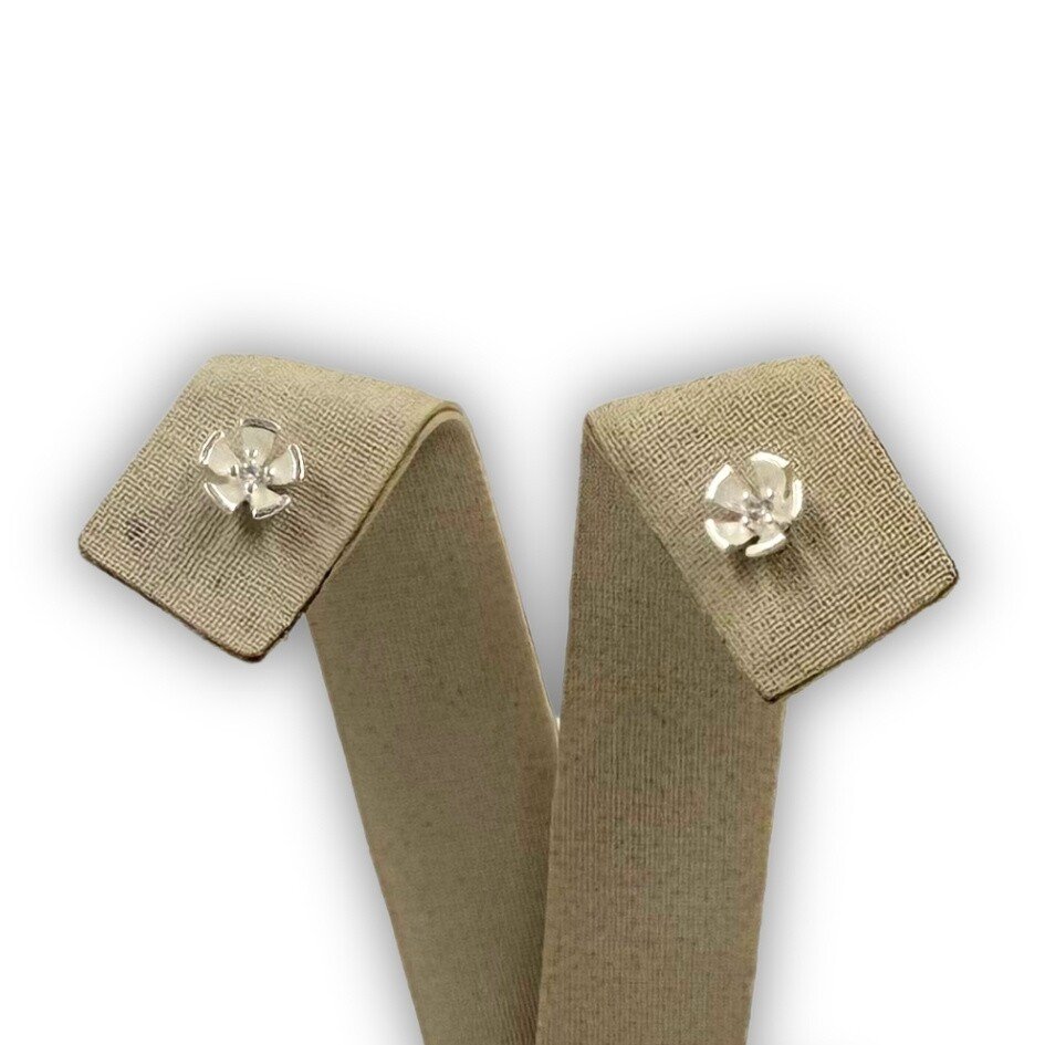 Par de brincos em prata 925. Brincos em forma de flor.