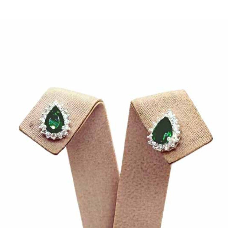 Brincos em formato de gota com zircônia verde e microzircônias.