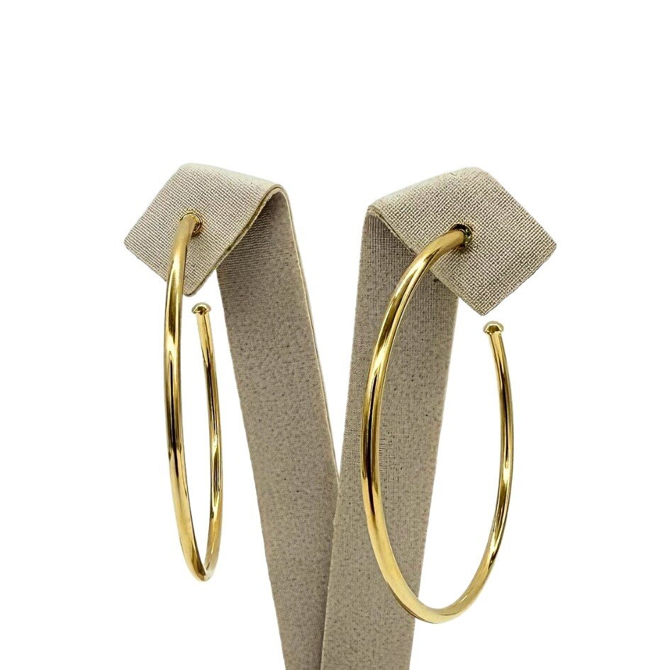 Par de brincos banhados a ouro em formato de argola, clássico e versátil para compor looks atemporais com muito estilo.