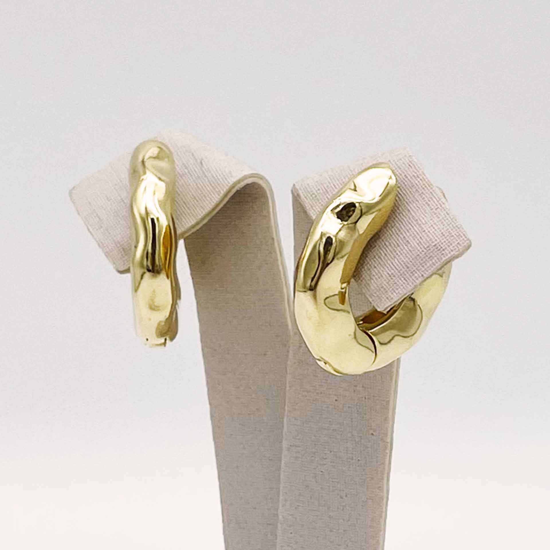 Par de brincos banhados a ouro em formato de argola Gota. Argola com fecho de encaixe.