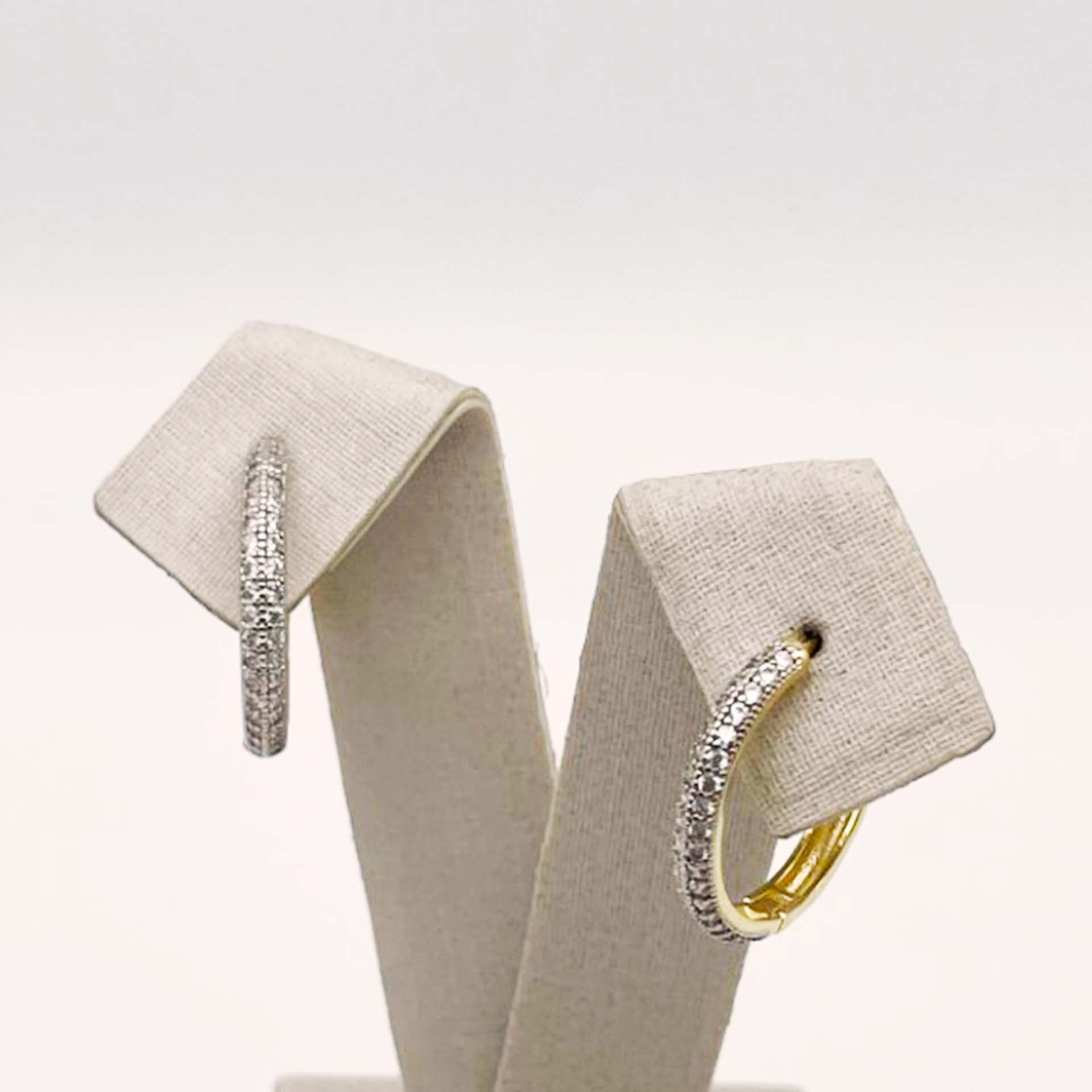Par de brincos banhados a ouro em formato de argola e zircônias. Argola com fecho de encaixe.