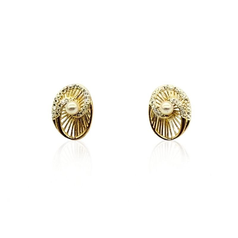 Par de brincos banhados a ouro, com elegante pérola e delicadas microzircônias, que adicionam sofisticação e brilho discreto. Contam com fecho tarraxa para conforto e segurança.