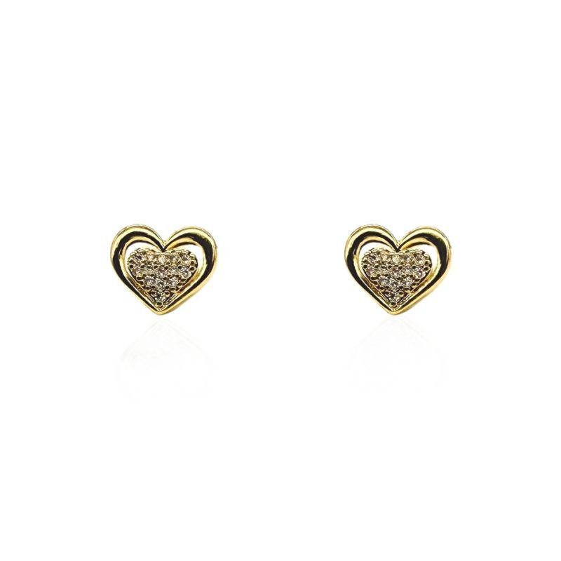 Delicados e cheios de charme, os brincos dourados em formato de coração com zircônias são perfeitos para quem ama um toque romântico no visual. Com acabamento dourado de alta qualidade e cravejamento de zircônias cintilantes, essa peça combina elegância e feminilidade na medida certa.