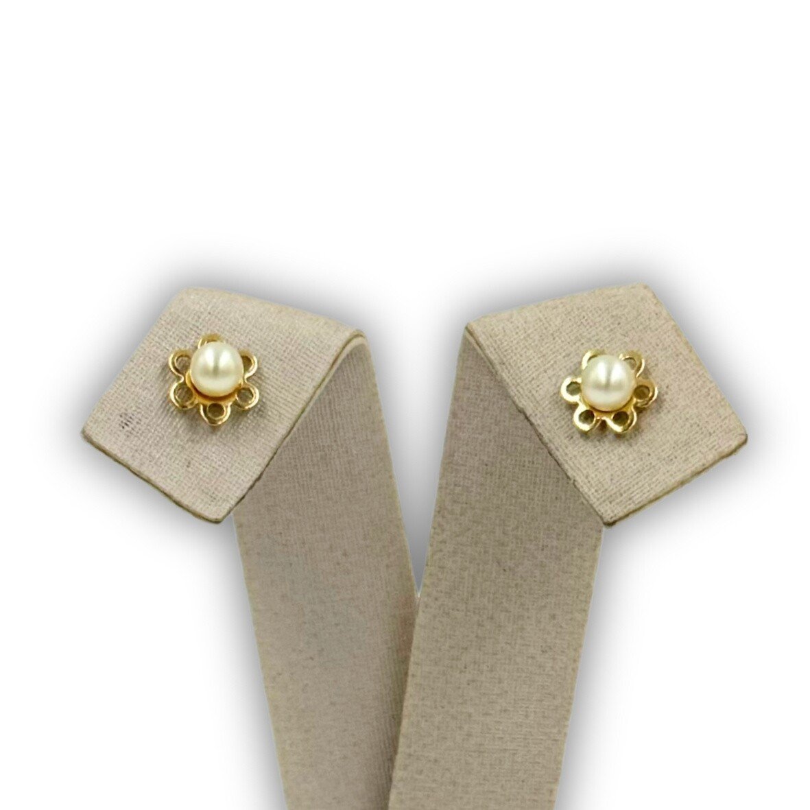 Par de brincos em formato de flor com uma pérola.