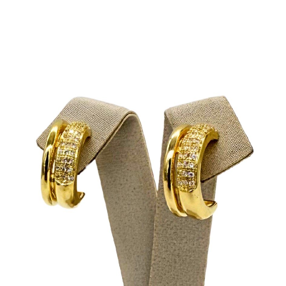Brinco em formato de meia argola com zircônias.