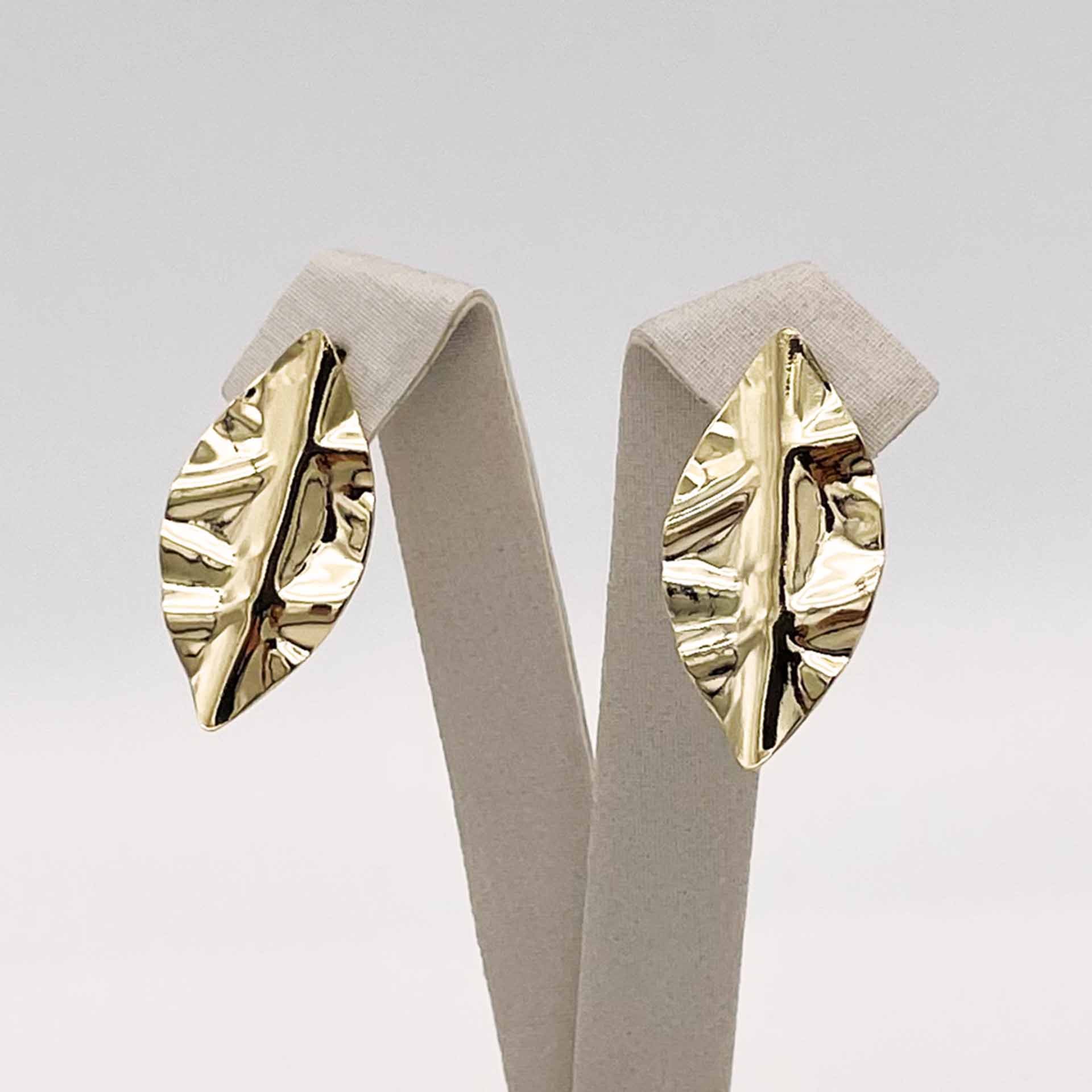 Par de brincos banhados a ouro. Brincos estilo orgânico em formato de folha.