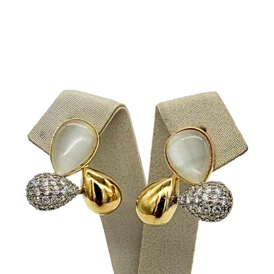 Elegância e mistério em uma única peça. Este par de brincos banhados a ouro destaca-se pela pedra Olho de Gato, conhecida por seu brilho suave e efeito cintilante, harmonizada com zircônias que acrescentam um toque de sofisticação. Com fecho tarraxa, oferece conforto e segurança no uso diário ou em ocasiões especiais.