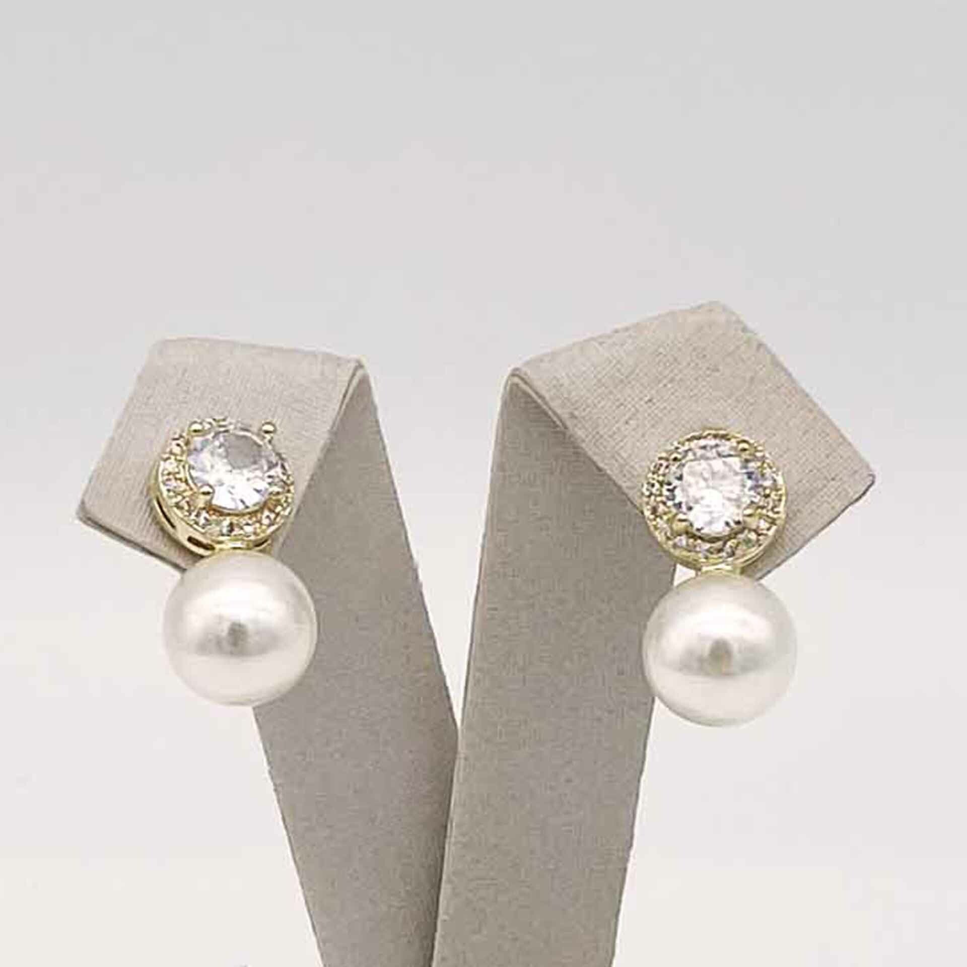 Par de brincos banhados a ouro com pérola e zircônia cristal.