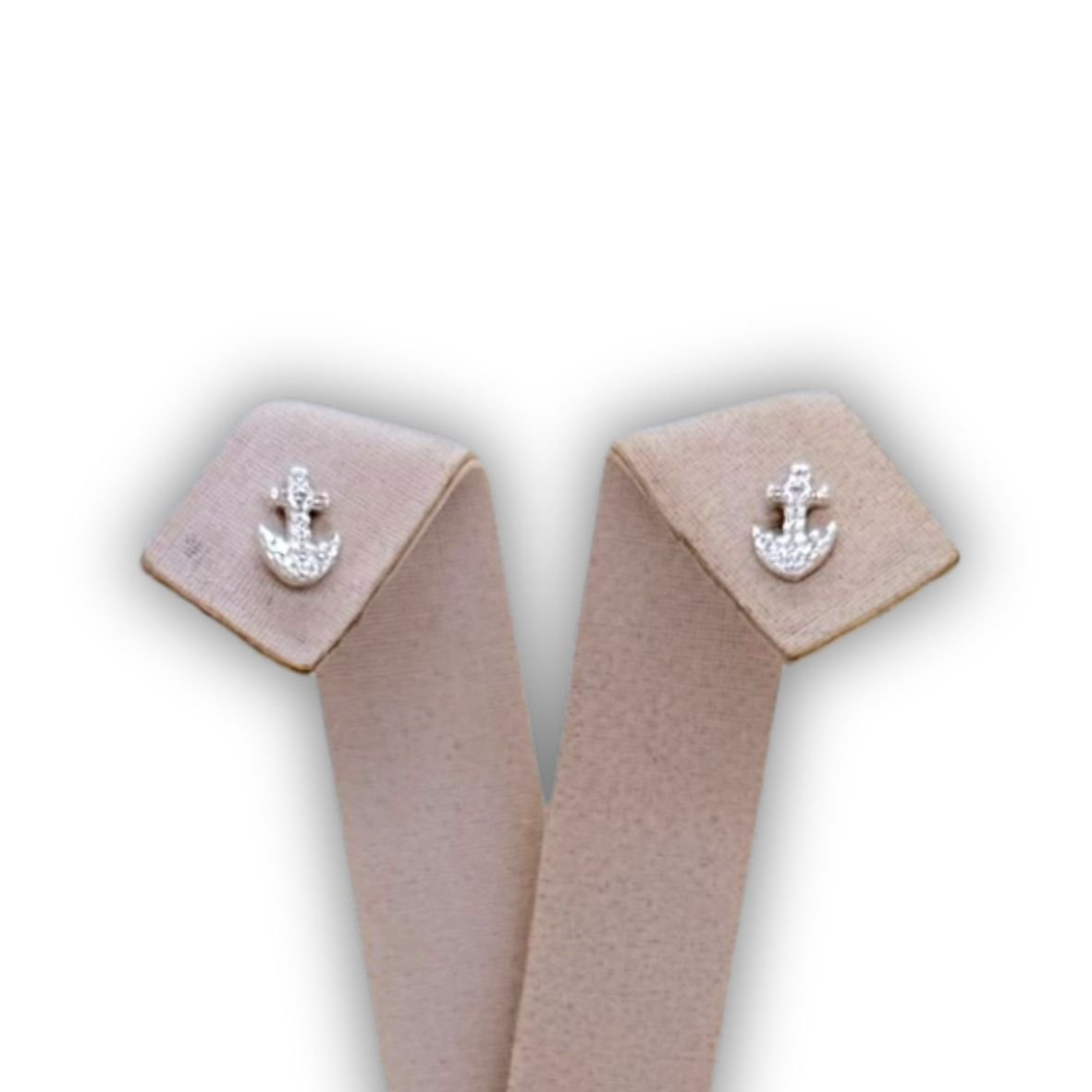 Par de brincos em prata 925 em formato de âncora com zircônias.