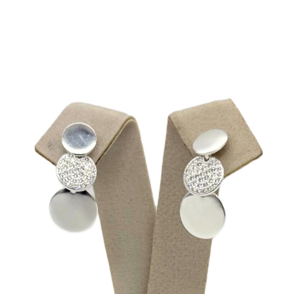 Par de brincos em prata 925 com círculos liso e microzircônias.