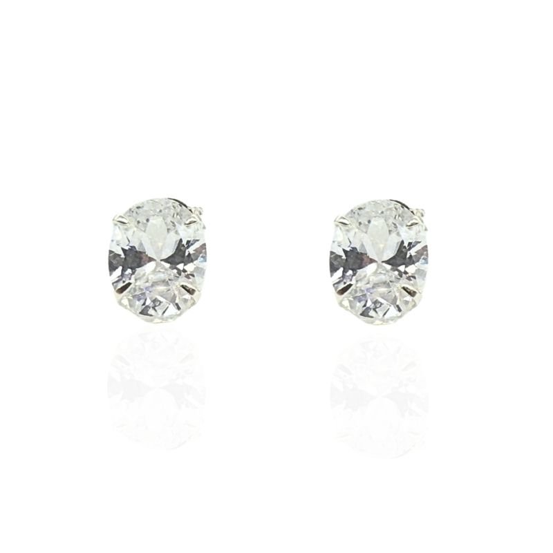 Par de brincos em prata 925 com zircônia oval ponto de luz e fecho tarraxa.