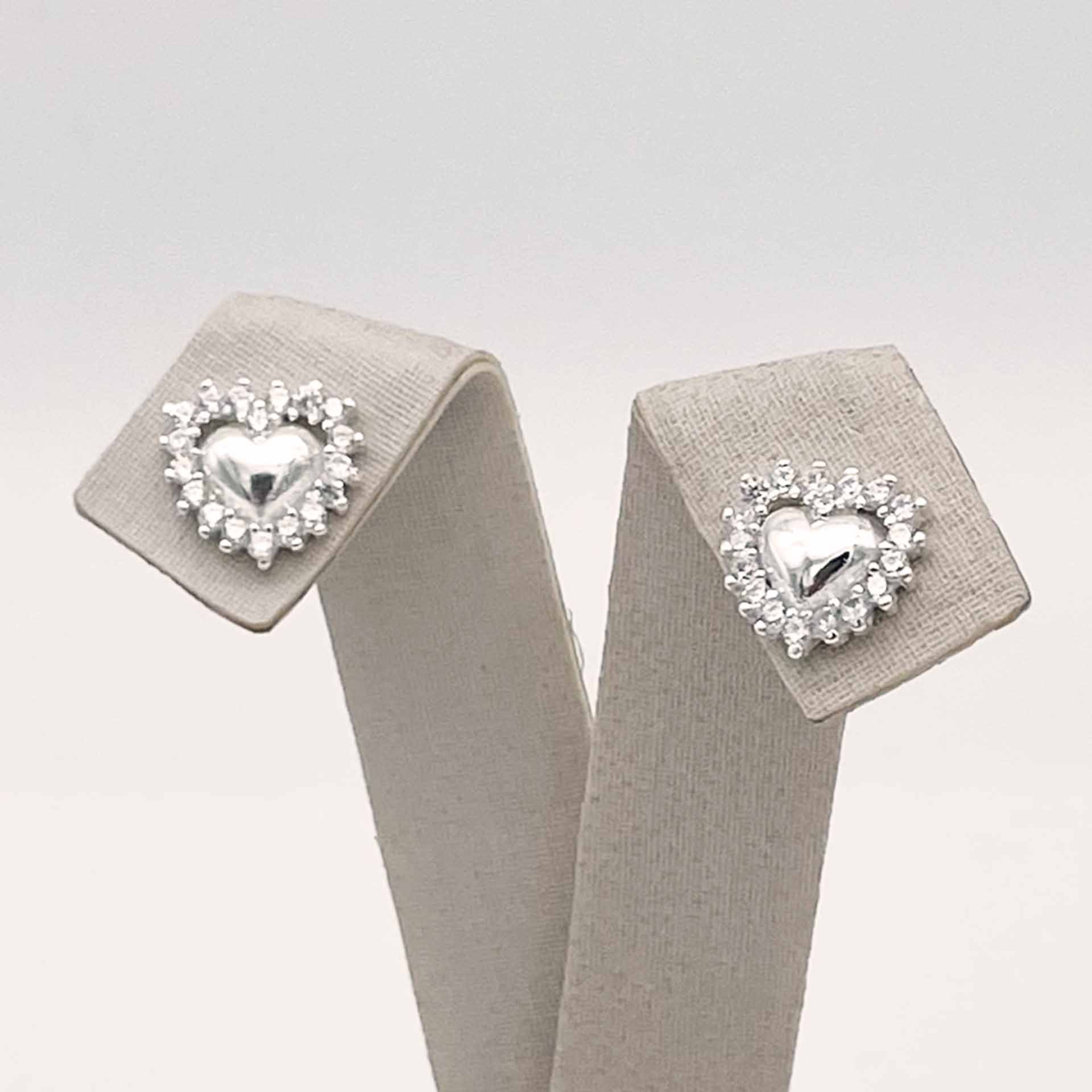 Par de brincos em prata 925 em formato de coração com zircônias.