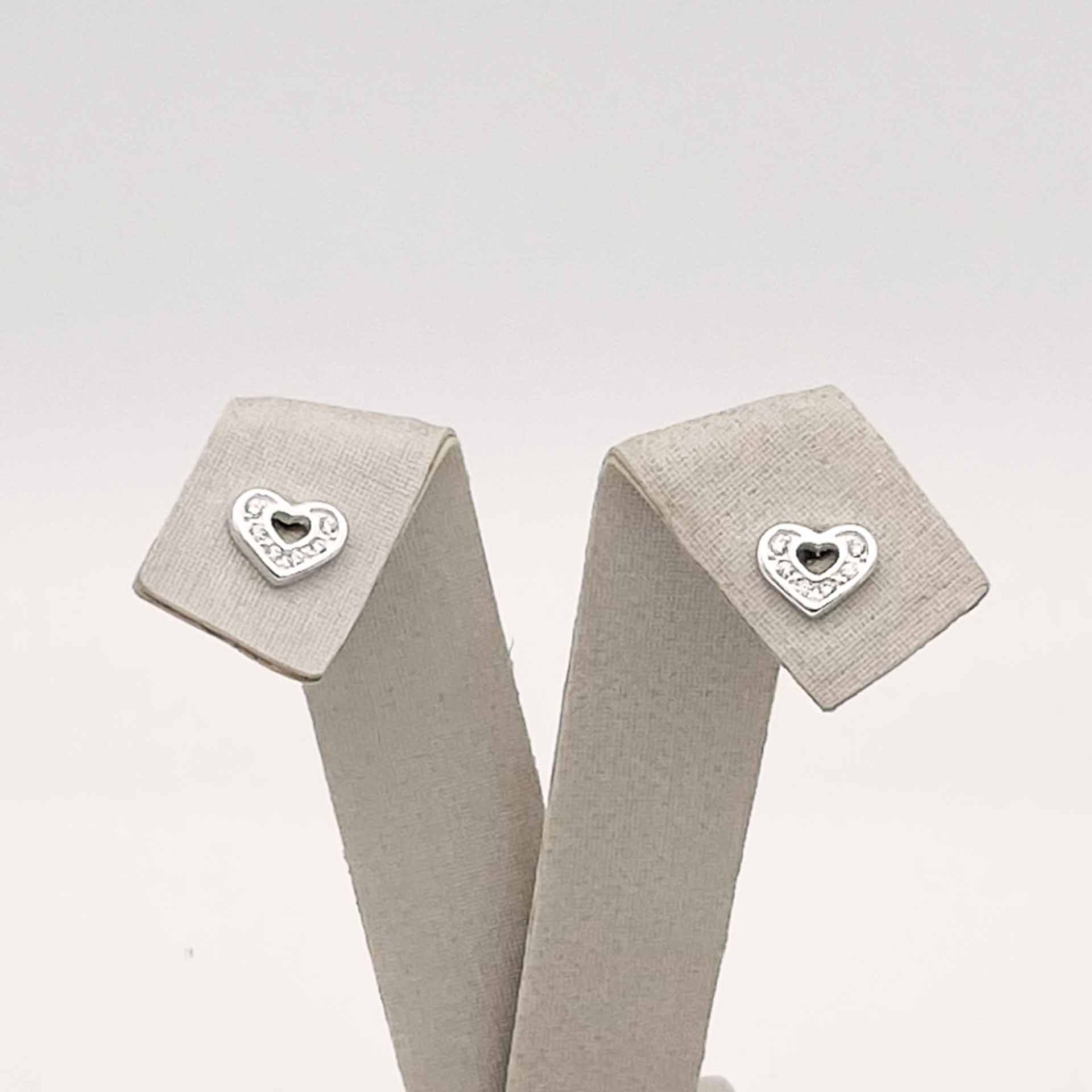 Par de brincos em prata 925 em formato de coração vazado com zircônias.