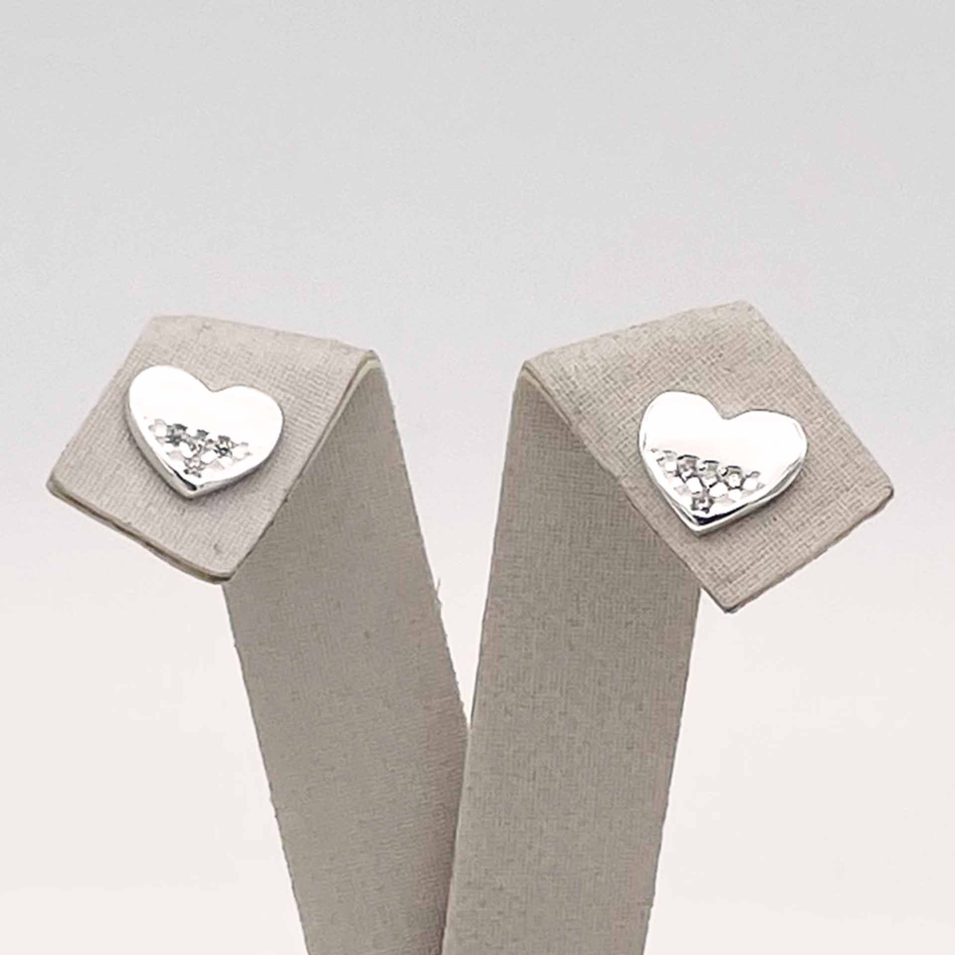 Par de brincos em prata 925 em formato de coração com zircônias.