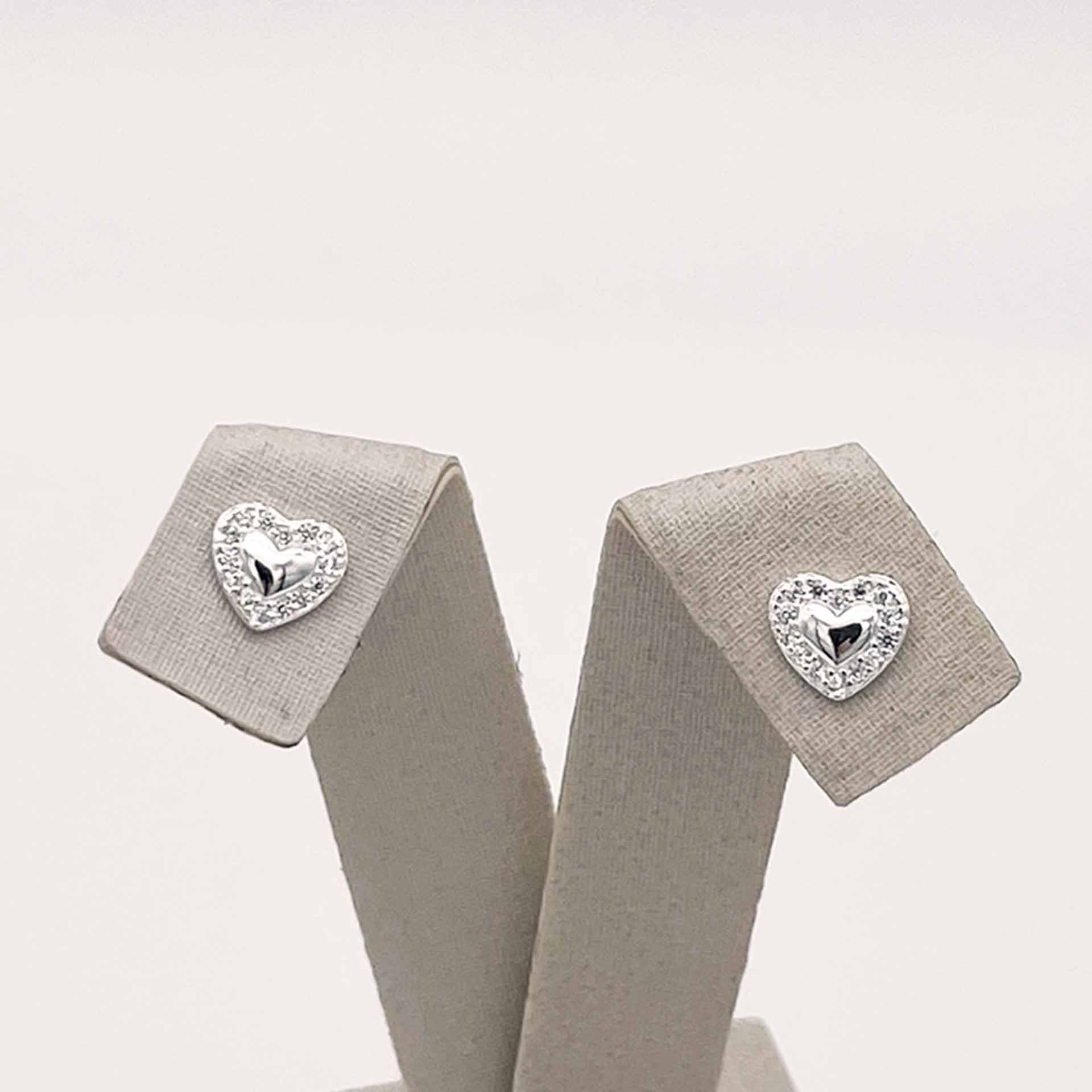 Par de brincos em prata 925 em formato de coração com zircônias.