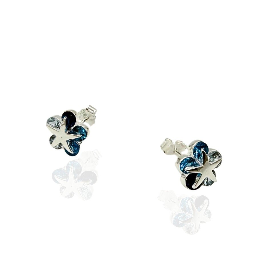 Este par de brincos em formato de estrela é confeccionado em prata 925, garantindo qualidade e durabilidade. Cravejado com zircônias cristal azul, ele traz um toque de cor e sofisticação na medida certa.