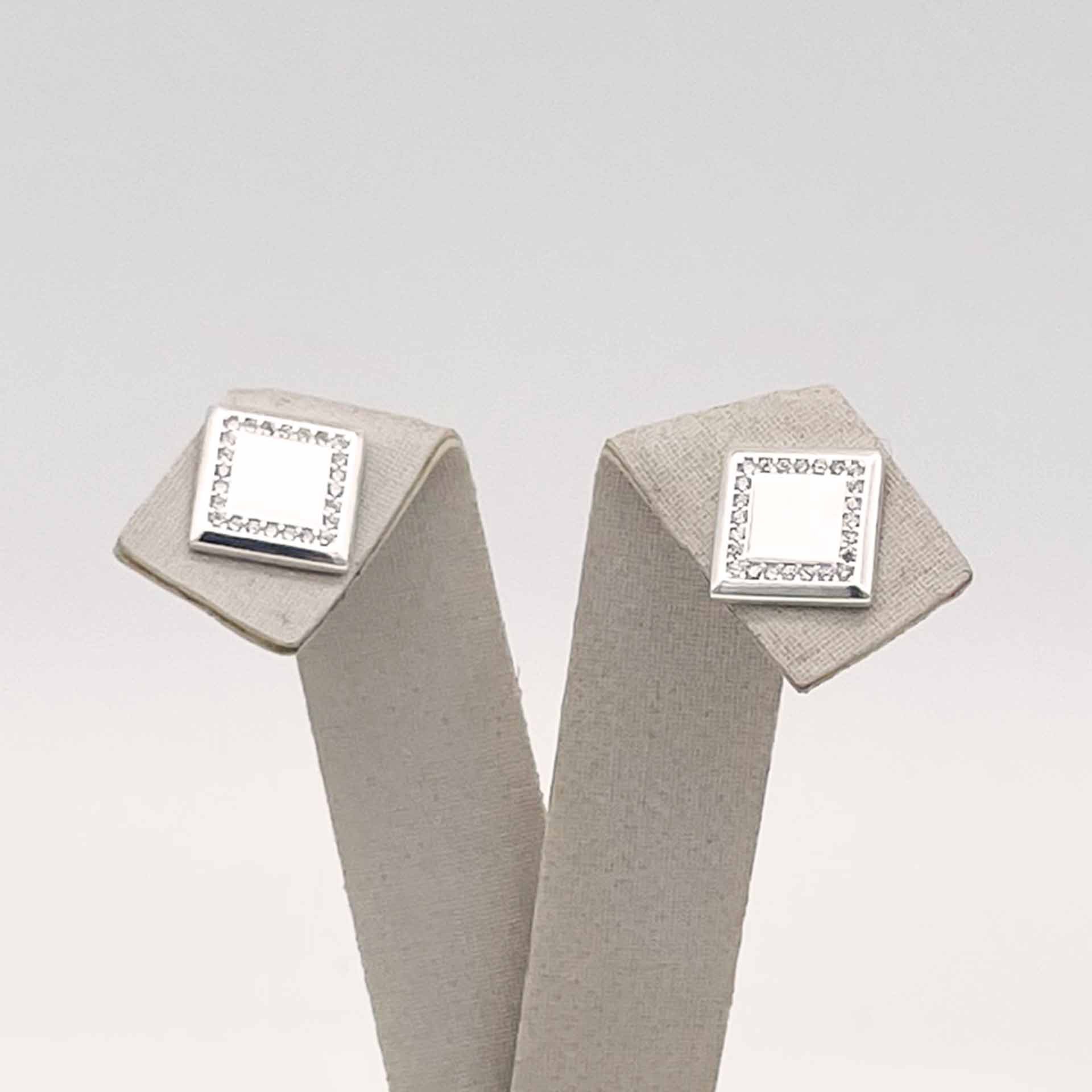 Par de brincos em prata 925 em formato quadrado com zircônias.